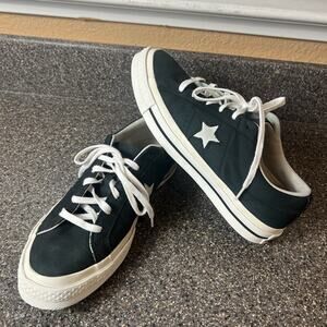 Converse One Star Low Top Womens Sz 8.5 Black Leather Sneaker Lace Up Skate Shoe