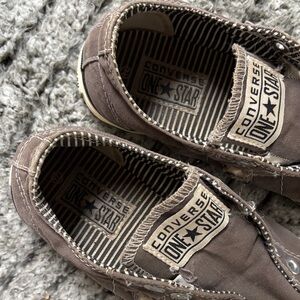 Classic Converse One Star sneakers. Rich brown canvas with cream accents. Timeless design for everyday wear. Awesome kicks see a few marks on rubber