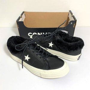 NEW Converse One Star Ox Sneakers Street Warmer Black Leather Faux Fur Low Top Size 6.5