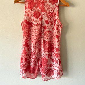 Converse One Star Sleeveless Pink Floral Pleated Henley Sheer Blouse Size L.