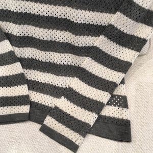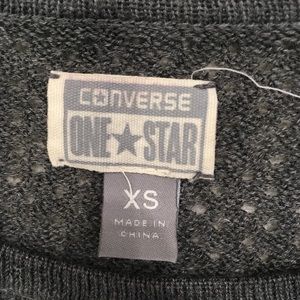 Converse One Star women’s sweater size extra small. Features a gray and white striped design. Small holes in fabric are by design; sweater is somewhat see-through because of the holes but still fairly warm. Perfect for spring and fall! Pre-loved but in excellent condition.