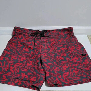 Converse One Star Swim Trunks 38 Men's Swim Suit Red Black Floral Cotton Blend