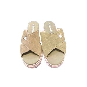 Converse One Star Womens 5.5 Green Sage Suede Open Toe Sandals Slides