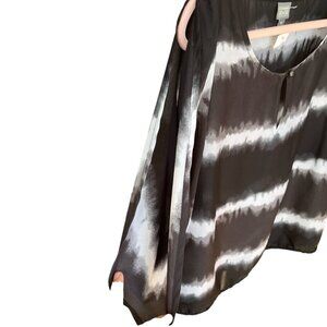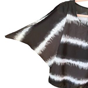 Style: Black & white tie dye stripe, round neck, keyhole cutout, short sleeve split down the top.