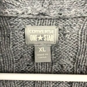 Converse One Star Gray Wool Cable Knit Open Front Cardigan Sweater Thick Winter