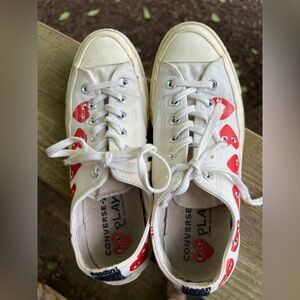 Converse PLAY Comme Des Garcons red hearts white Chuck Taylors sz 9 low tops