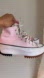 Step up your style with these chic pink high-top platform sneakers. Perfect for adding a trendy touch to any outfit.