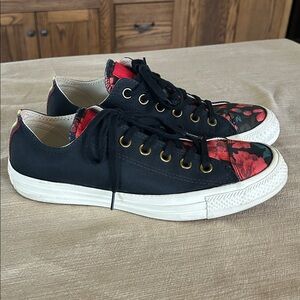 Stylish white canvas sneakers. Features lace-up front and durable rubber soles. Iconic design with metal eyelets. Only worn a few times, a few light scratches on the rubber toe area but not a big deal.