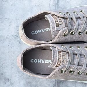 Converse Chuck Taylor All Star Low Top “Precious Metal” Sneaker in Metallic Taupe Women’s Sz 8