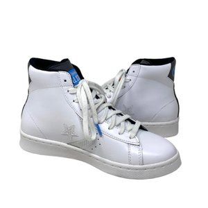 First launched back in the ‘70s, Converse’s Pro Leather high-top is reimagined for a new era with this white leather 'Birth of Flight' rendition. Rooted to the court, it’s overlaid with Velcro All Star detailing in blue and red, and completed with a basketball-inspired touch of golden branding at the heel.