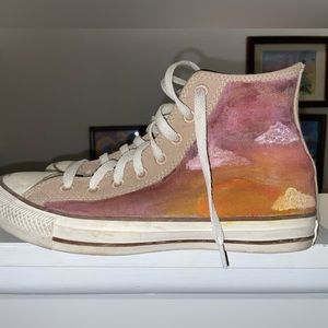 Converse Renewed size 10/8 W/M hand-painted brown high tops. Worn but paint is in great shape.