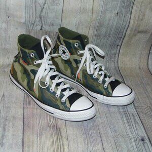 Sparkling red glitter design. High-top style. Vibrant blue laces. Classic Converse look.