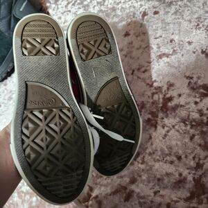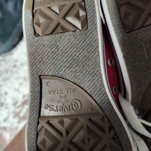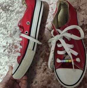 Vibrant red Converse sneakers for kids. Features classic white laces and durable design.