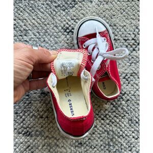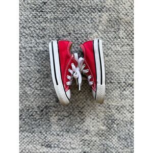 Converse red low top lace sneakers. Toddler size 5 - cute for baby boy or girl. Great preowned condition