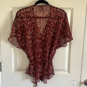 Converse Red Sheer Short Sleeve Button Down Blouse Size Small