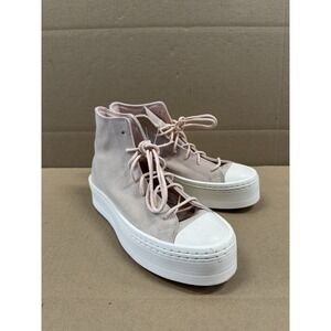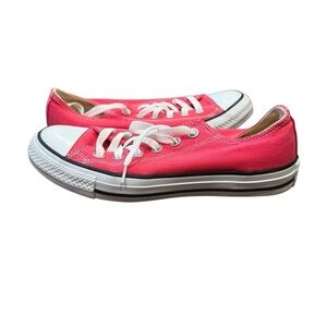 Classic Converse sneakers. Vibrant pink canvas. White laces and sole. Iconic design.