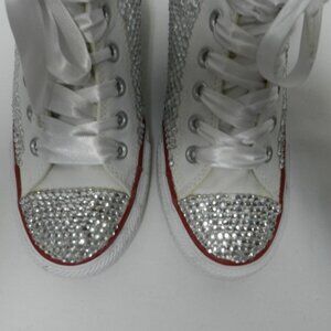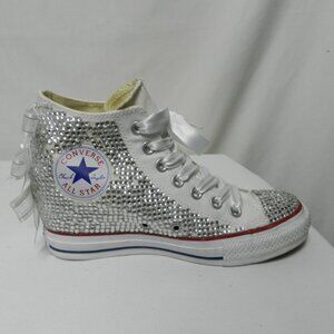 Converse Rhinestone Bling hidden wedge sneakers white sliver back bows Size Sz 8