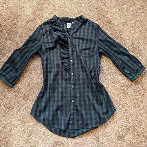 Converse Ruffle Checkered Button Up Top Size XSmall