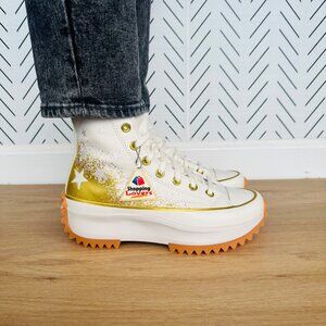 ⭐Converse Run Star Hike Hi Women Shoes Embroidered Stars White Gold Platform Sz 7.5 A12900C