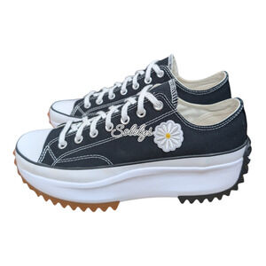 Forget ordinary Chucks—these Run Star Hike Lows mix bold edge with playful charm. The classic black canvas gets leveled up with daisy floral patches on both sides, while the exaggerated jagged sole keeps the silhouette modern and striking. Equal parts streetwear statement and everyday staple, they’re the kind of kicks that spark double takes without even trying.