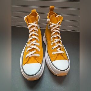 Mustard Converse high-tops with classic white laces. Stylish and bold. Like new 😊