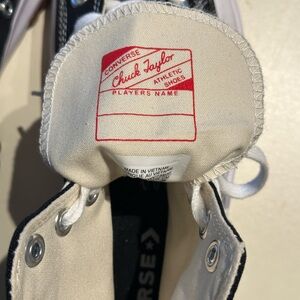 Classic high-top design with black canvas and white accents. Features signature star logo and textured sole. Mens 10, Women’s 11.5. New never worn. I ship same day!