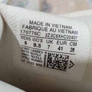 The Converse Run Star Hike Platform unisex M8 W9.5 camo hi-top sneakers 170776C are stylish and comfortable athletic shoes suitable for a variety of occasions such as activewear, casual wear, and workwear. With a high-top sneaker style and a durable rubber outsole, these sneakers feature a camouflage pattern and are designed for activities like gym training, walking, and even skateboarding. Made with a blended fabric upper material, these sneakers offer a comfortable fit for women in US shoe size 8 and UK size 7. Perfect for all seasons, these Converse sneakers are a fashionable and versatile choice for everyday wear.