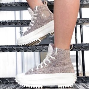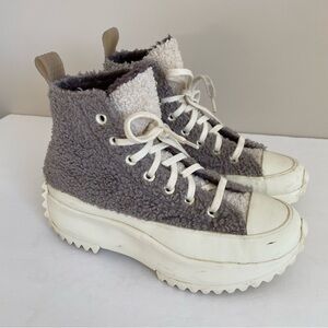 Converse Run Star Hike Sherpa Gray mauve Lined Platform Sneakers size 7
