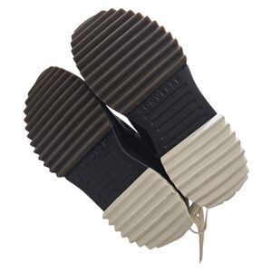 Two-tone jagged rubber outsole with unique rounded heel.