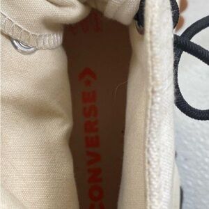 Converse high-top sneakers with a bold zigzag sole. Cream canvas upper with black accents. Ideal for everyday style.