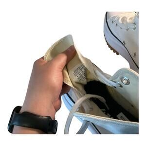 Chic cream high-tops with a bold platform sole. Eye-catching design with durable tread.