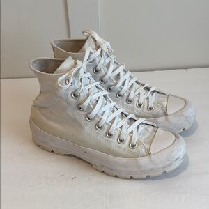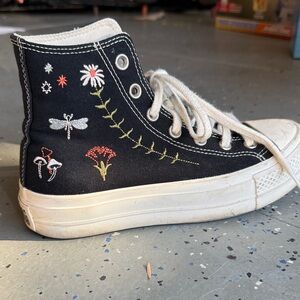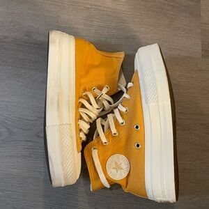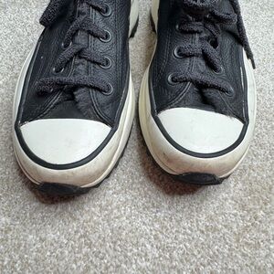 Stylish Converse sneakers. Black canvas upper. White rubber sole. Warm lining Platform Women’s 9.5 men’s 6