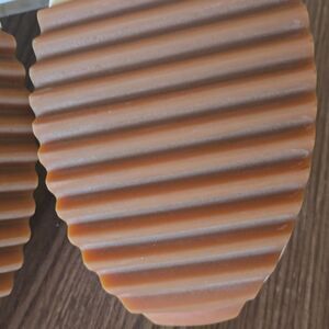 Chunky Platform with jagged rubber bottom.Excellent pre-owned condition, except for a small stai on one shoe. please refer to photos for more details and. Questions? Leave a comment below