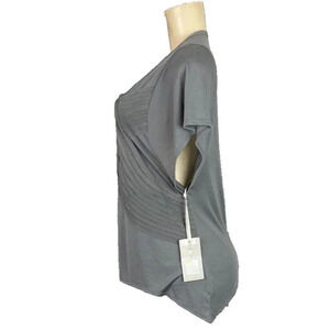 Item: Converse S Gray Quartz Textured Front Scoop Neck Handkerchief Hem Short Sleeve Top