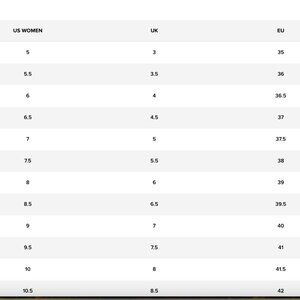 Junior size 4.5. Converts to Women's size 6-6.5. Great condition, just a few marks on white rubber parts.