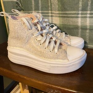 Converse Sherpa all star move platform “perfect is not perfect” sneaker size 6. Light soil, Sherpa platform high top sneaker.