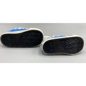 Up for sale is a pair of nice pre-owned Converse All Star shoes for children. Great pre-owned condition. These shoes feature a double tongue in blue and black, giving them a unique and colorful look. The shoes are made from canvas, with a rubber outsole and a flat heel of under 1 inch.