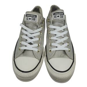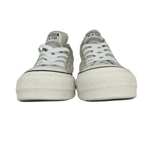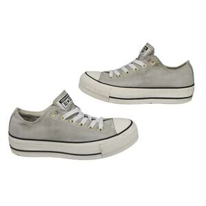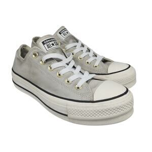 Converse Shoes Womens 8.5 Platform Gray Leather Gold Low Tops Grunge Preppy