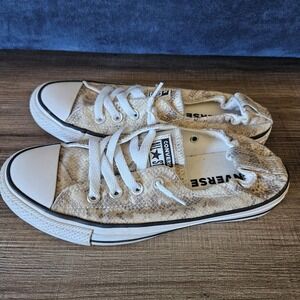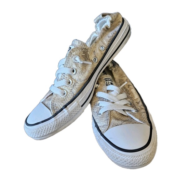 Converse Shoreline Slip On Sneakers Women's 7 Ivory Snake Print Lace Up Canvas