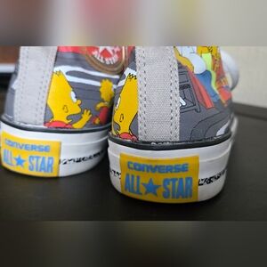 limited edition Converse/ the Simpsons high-top sneakers. Gray with colorful cartoon print. Used once indoors only like new. !