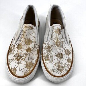 Converse Slip-On Low Top Sneakers White Gold Spider Web Size 8 Halloween Goth