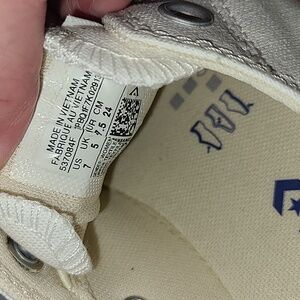 Classic Converse sneakers. White canvas with red and blue trim. Comfortable and stylish.