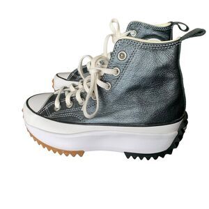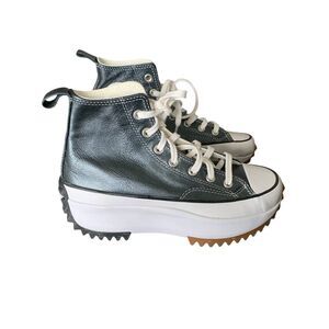 Converse Sneakers Run Star Hike High Metallic Black Leather Unisex M 5 W 6.5 New