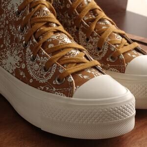 Converse Sneakers WMS SZ 6 Gold Paisley High Top Platform Shoes Bandana Casual