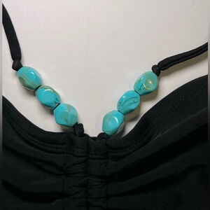 Pre-loved condition. Top only. Black with turquoise stone-like detailing on neck ties.