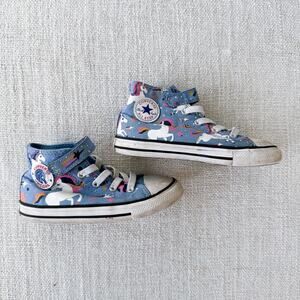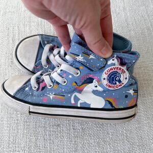 Converse Toddler Unicorn High Tops. Size toddler 10. Good condition. Stains and wear, but lots of play left. Smoke free, pet friendly home.