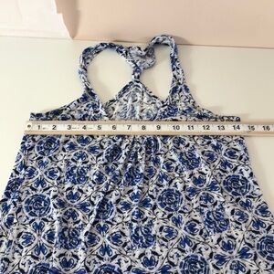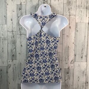 blue, black and white,Twisted Racerback ,Very soft and light weight Colors may vary due to lighting, good used condition, size S