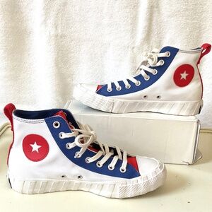 CONVERSE UNT1TL3D HIGH TOP SNEAKERS RED WHITE BLUE SIZE 7 MENS/ SIZE 9 WOMENS