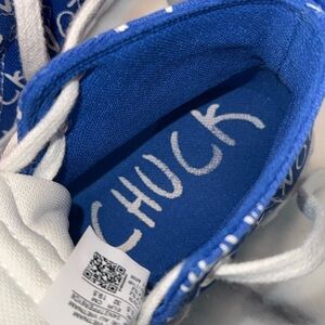 Stylish and comfortable, these Converse kids high-top sneakers feature a vibrant blue color with white accents. Perfect for everyday wear. Youth size 1 in Great condition. Lightly worn.