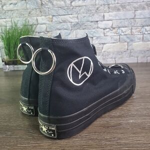 The Undercover founder took inspiration from the cult-classic film “The Warriors” for the two-colorway set of the “New Warriors” Chuck 70, which features a zippered tongue and metal rings at the toe and heel for a punk aesthetic. Also available in a white version, this black colorway features an all-black treatment on the canvas upper and rubber sole.